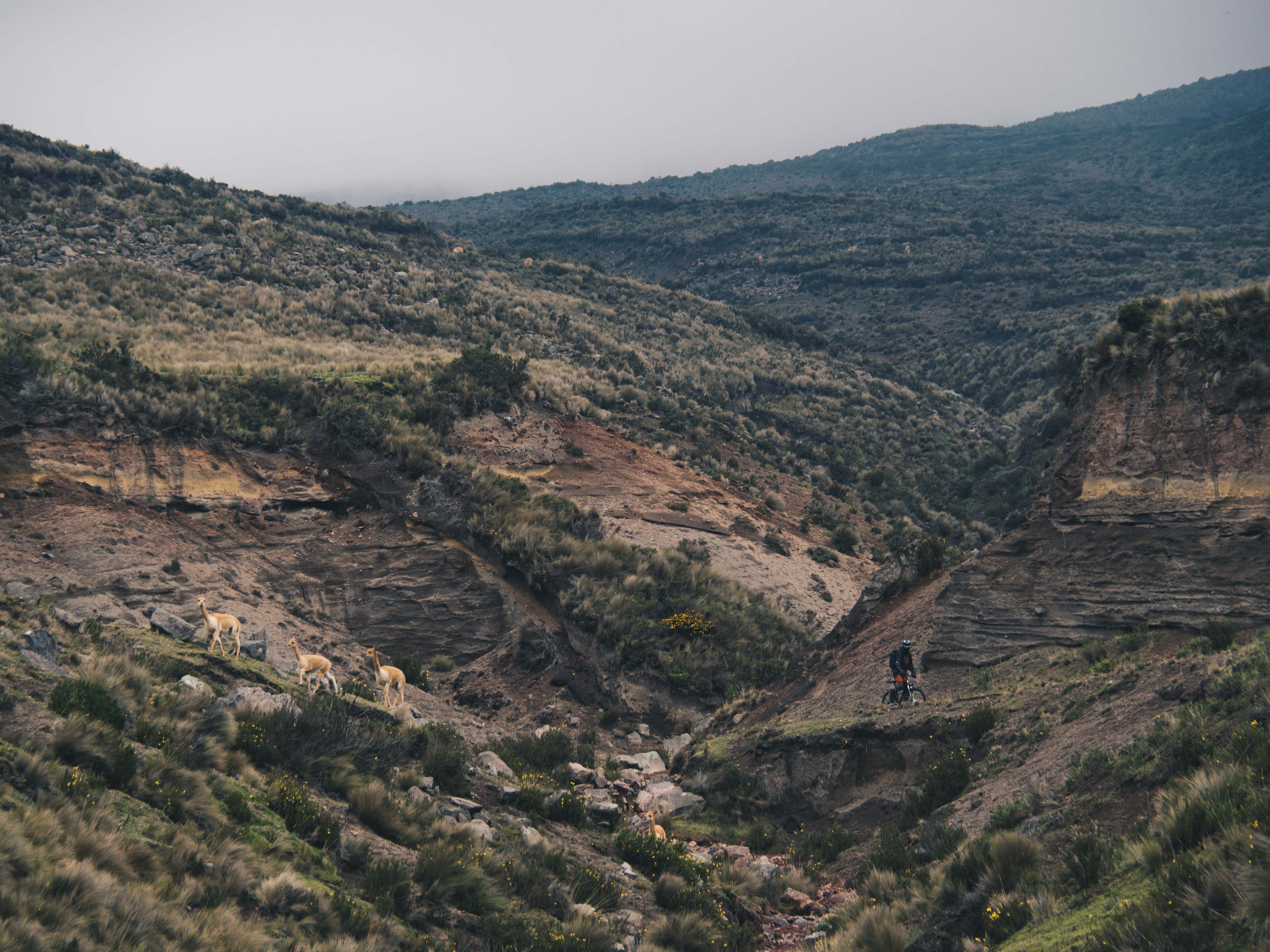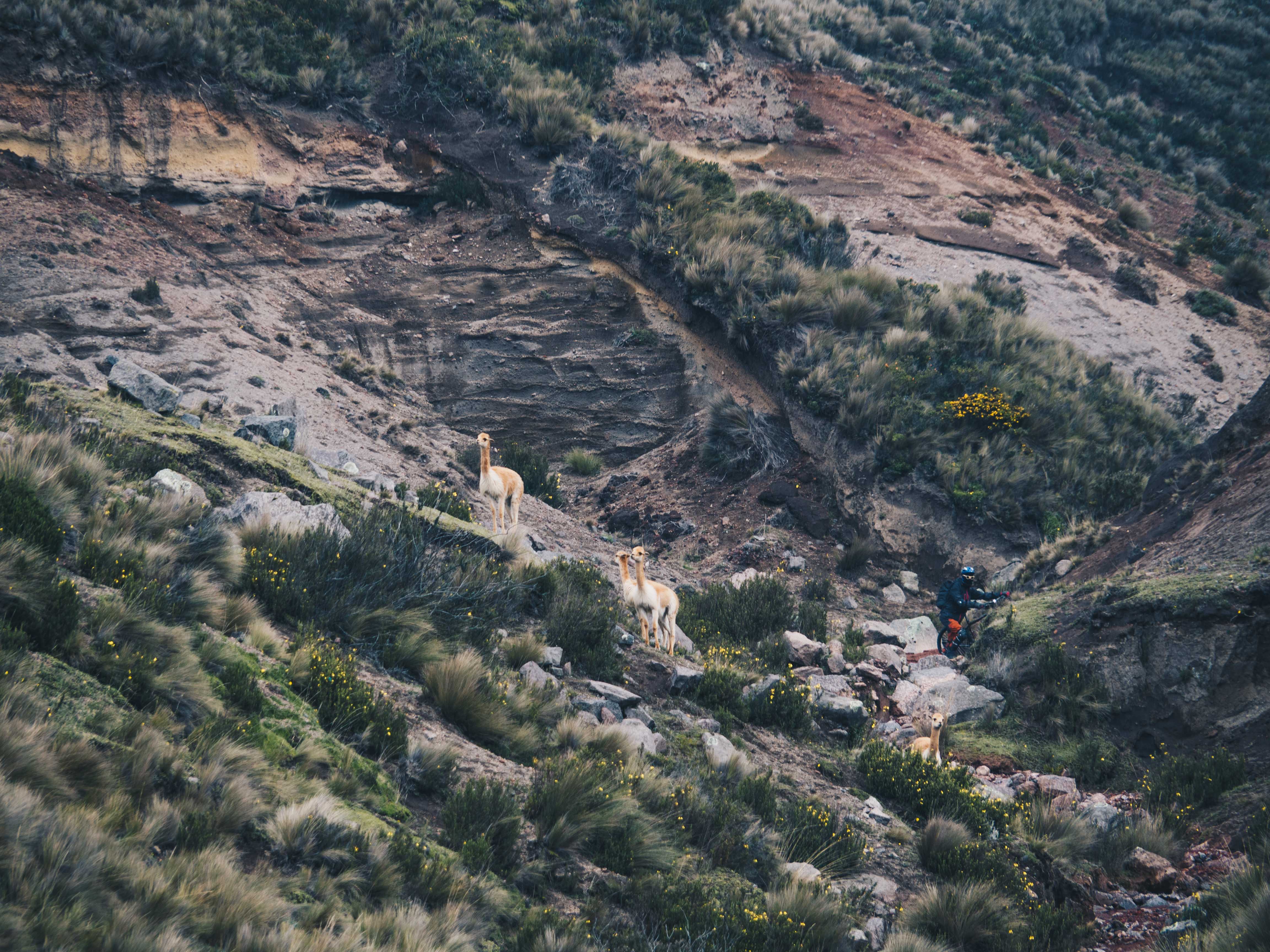 On redescend au parking à 4,800m et de la on enfourche nos vélos pour 2800 m de dénivelé - 37 kilomètres. Enfin pour Cédric car de mon côté j’ai vite abandonné... Le brouillard s’est levé, le froid était mordant (2 degrés), le sentier était très escarpé avec d’énormes rochers partout, la peur de passer au dessus du vélo couplée avec le mal de l’altitude, j’ai abandonné!